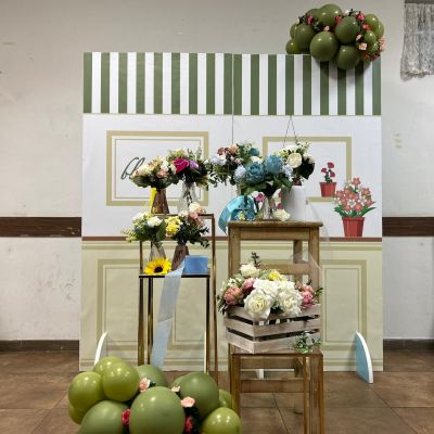 - Realizzazione di una scenografia completa con vele e palloncini con tecnica organica
