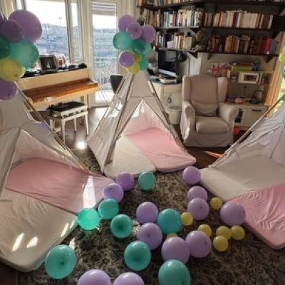 Stai cercando un modo nuovo per festeggiare o organizzare il classico pigiama party a casa con pochi amici o amiche della tua bambina o del tuo bambino? Magnum Eventi ha la soluzione giusta per te! La tendenza del momento, la festa pigiama party con Tende Teepee a Roma, ma non solo, comodi materassi, palloncini e lucine per creare l’atmosfera da sogno che stai cercando per un giorno così speciale, per incantare la festeggiata o il festeggiato con sorprendente effetto «WOW»! Tutti pronti? Indossate il vostro pigiama preferito e divertitevi insieme a noi per una fantastica festa Pigiama Party! Iniziamo la festa tema pigiama party con l’allestimento della location e quindi col preparare l’atmosfera accendendo delle luci soffuse: l’atmosfera calda, accogliente e rilassante è assicurata! La festa a tema pigiama party per bambini a Roma prevede che il team di allestitori specializzati che verranno in loco a montare, allestire e smontare le tende. Facciamo in modo che i bambini si ricordino quest’esperienza come una cosa divertente e indimenticabile, una serata che resti sempre nel loro cuore. Festeggiare a casa è importante per i bambini è infatti un modo per far conoscere il proprio mondo e condividere con i propri amici una parte di sé, l’entusiasmo per questa festa è sempre assicurato e allora via con l’organizzazione del super pigiama party. Magnum Eventi in grado di offrire anche un intrattenimento personalizzato e su misura non solo con l’intrattenimento ma anche fornendo un catering per una golosa merenda con biscotti glassati e torta esclusivamente a tema pigiama party per non trascurare nessun dettaglio!