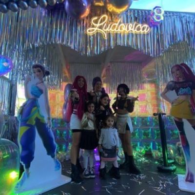 L’ambientazione richiama un vero palco con area ballo centrale, giochi di luce, backdrop coordinato e punti fotografici integrati, così che le bambine si sentano parte dello spettacolo appena entrano.