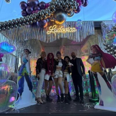 (Con possibilità di trasporto gratuito e posizionamento da parte degli animatori)Palloncini Numero anni festeggiatoComposizioni di Palloncini a tema Huntrix, KPop Demon Hunters per CentrotavolaComposizioni di Palloncini a tema Huntrix, KPop Demon Hunters da terraPalloncini ad Elio con nastroPalloncini personalizzati con scritta in Vinile(Alcune configurazioni richiedono l’allestitore in loco per la decorazione, il montaggio e lo smontaggio)Scenografie con Palloncini a tema Huntrix, KPop Demon HuntersFondale Scenografico con Allestimento a tema Huntrix, KPop Demon HuntersAllestimento Mezzo arco organicoAllestimento Arco organicoAllestimento Cerchio organico -